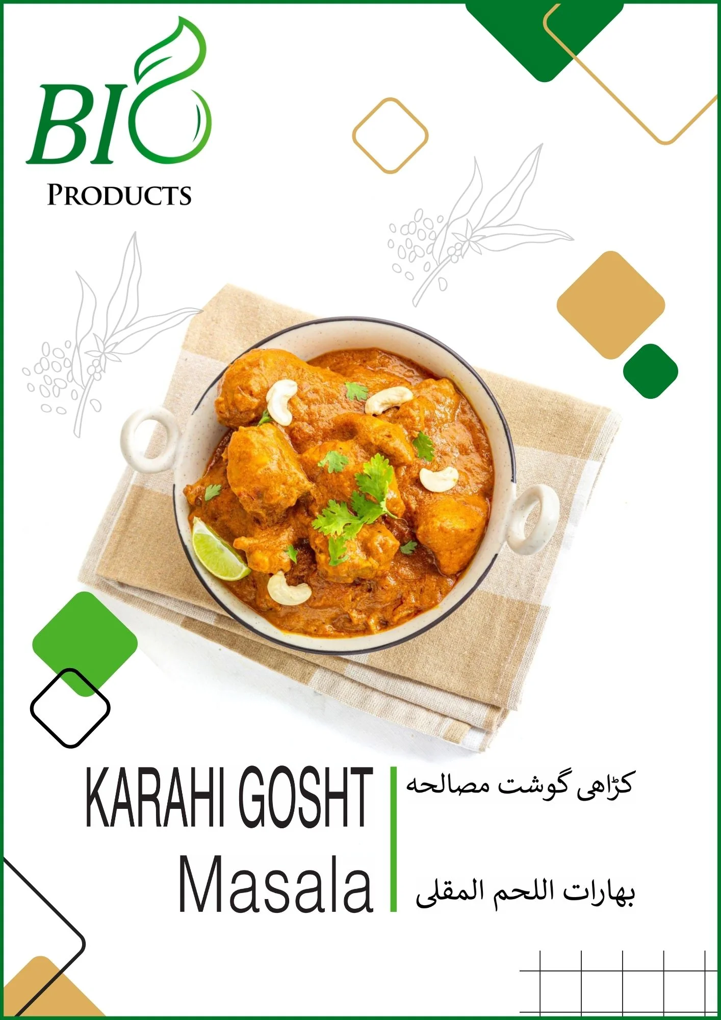 Elevate your meat with our KARAHI GOSHT MASALA. This authentic spice blend adds a bold, tangy flavour to your dish, elevating it to the next level. Add just the right amount of spice and elevate your cooking.